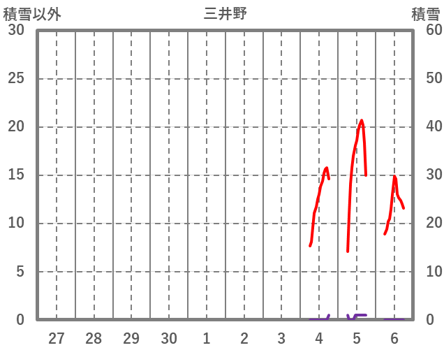 | 日 | 時 | 気温 | 降水 | 風向/風速 | 日照 | 積雪 | 降雪 |