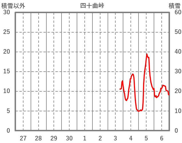 | 日 | 時 | 気温 | 降水 | 風向/風速 | 日照 | 積雪 | 降雪 |