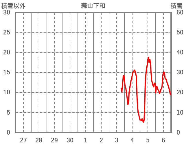 | 日 | 時 | 気温 | 降水 | 風向/風速 | 日照 | 積雪 | 降雪 |