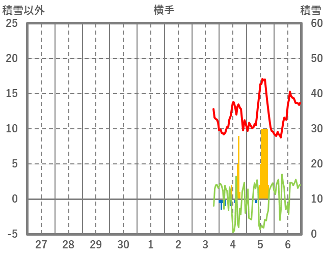 | 日 | 時 | 気温 | 降水 | 風向/風速 | 日照 | 積雪 | 降雪 |