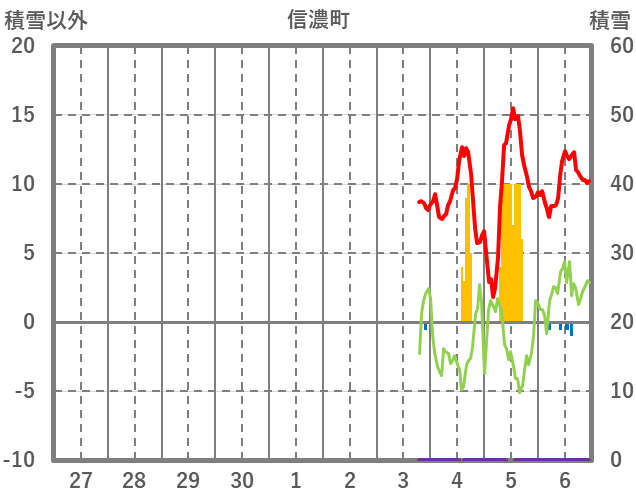 | 日 | 時 | 気温 | 降水 | 風向/風速 | 日照 | 積雪 | 降雪 |
