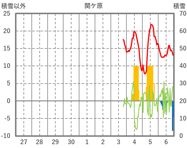 | 日 | 時 | 気温 | 降水 | 風向/風速 | 日照 | 積雪 | 降雪 |