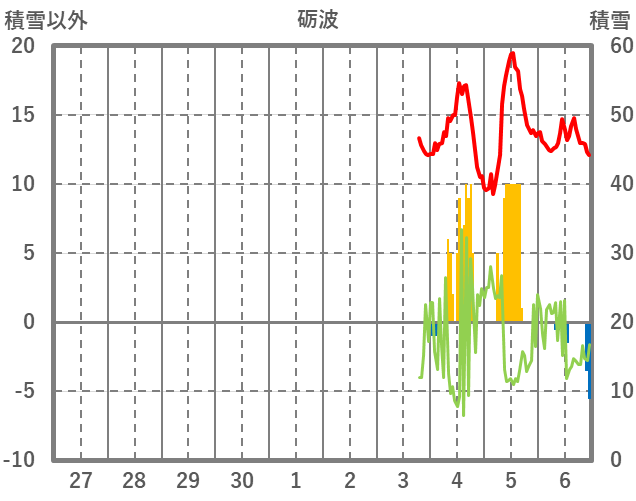 | 日 | 時 | 気温 | 降水 | 風向/風速 | 日照 | 積雪 | 降雪 |