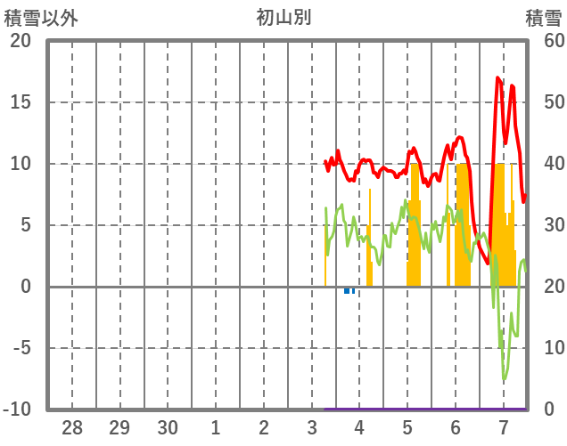 | 日 | 時 | 気温 | 降水 | 風向/風速 | 日照 | 積雪 | 降雪 |