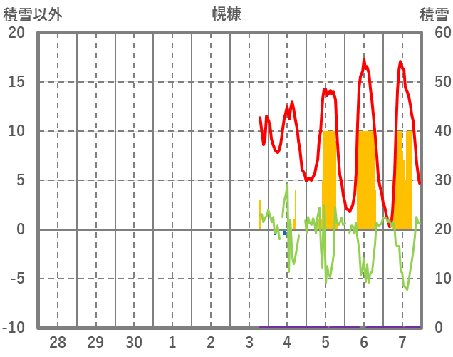 | 日 | 時 | 気温 | 降水 | 風向/風速 | 日照 | 積雪 | 降雪 |
