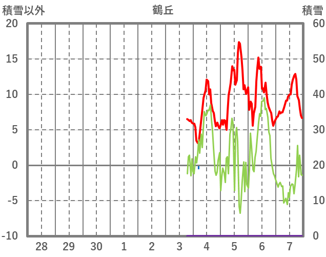 | 日 | 時 | 気温 | 降水 | 風向/風速 | 日照 | 積雪 | 降雪 |