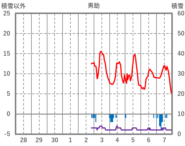 | 日 | 時 | 気温 | 降水 | 風向/風速 | 日照 | 積雪 | 降雪 |