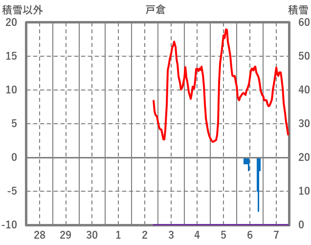 | 日 | 時 | 気温 | 降水 | 風向/風速 | 日照 | 積雪 | 降雪 |