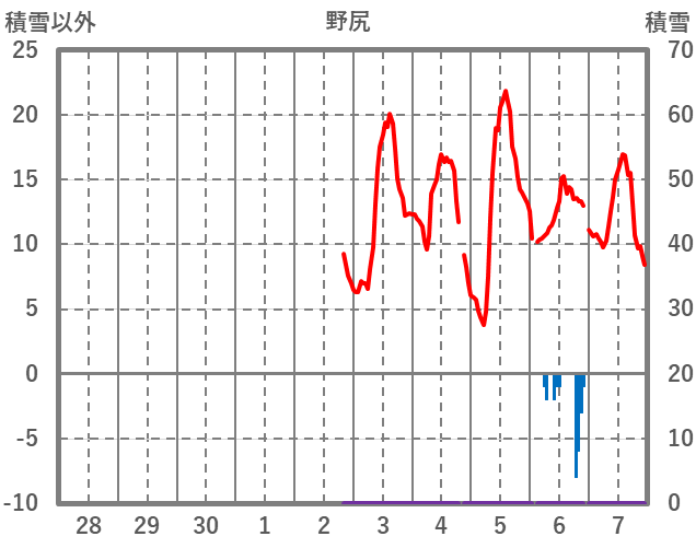 | 日 | 時 | 気温 | 降水 | 風向/風速 | 日照 | 積雪 | 降雪 |