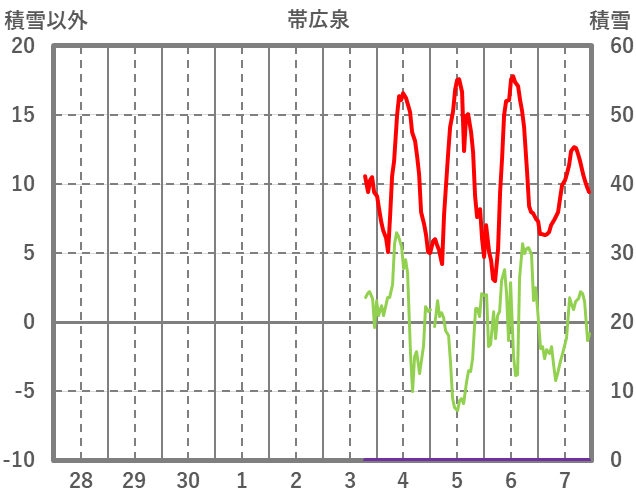 | 日 | 時 | 気温 | 降水 | 風向/風速 | 日照 | 積雪 | 降雪 |