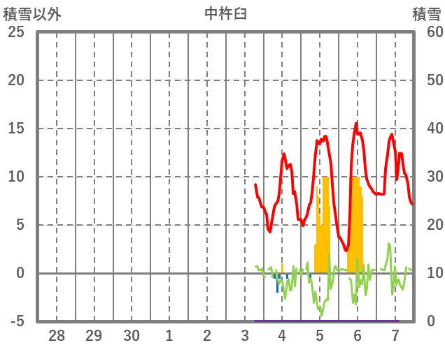 | 日 | 時 | 気温 | 降水 | 風向/風速 | 日照 | 積雪 | 降雪 |