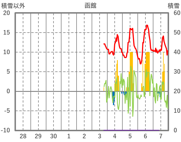 | 日 | 時 | 気温 | 降水 | 風向/風速 | 日照 | 積雪 | 降雪 |