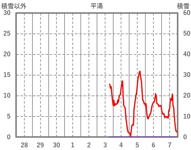 | 日 | 時 | 気温 | 降水 | 風向/風速 | 日照 | 積雪 | 降雪 |