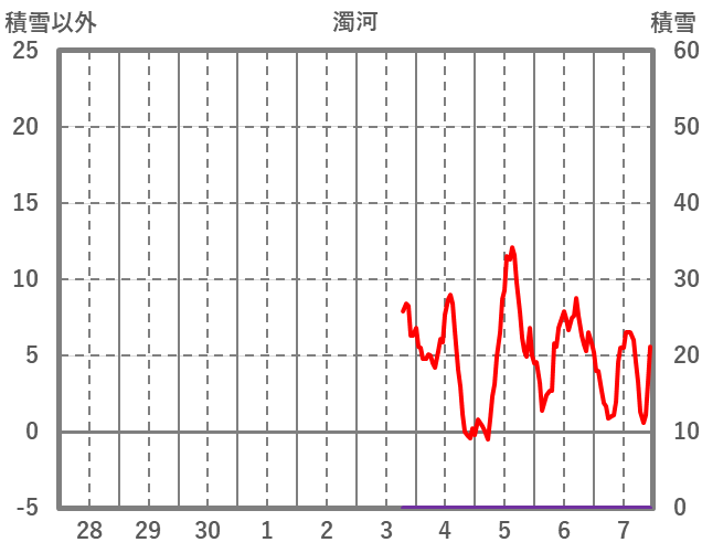 | 日 | 時 | 気温 | 降水 | 風向/風速 | 日照 | 積雪 | 降雪 |
