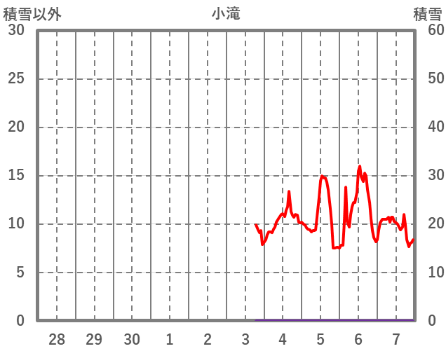 | 日 | 時 | 気温 | 降水 | 風向/風速 | 日照 | 積雪 | 降雪 |