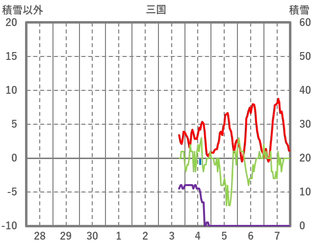 | 日 | 時 | 気温 | 降水 | 風向/風速 | 日照 | 積雪 | 降雪 |