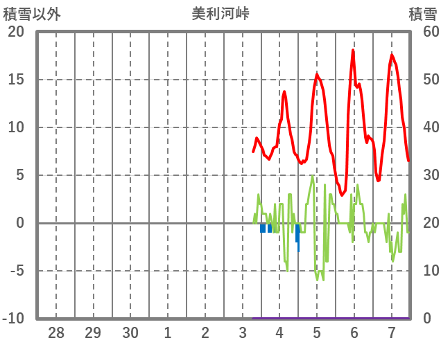 | 日 | 時 | 気温 | 降水 | 風向/風速 | 日照 | 積雪 | 降雪 |