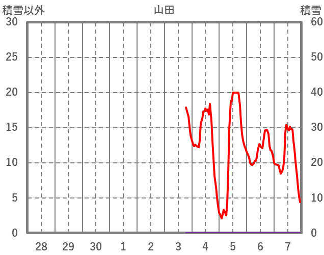 | 日 | 時 | 気温 | 降水 | 風向/風速 | 日照 | 積雪 | 降雪 |
