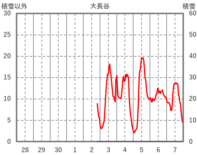 | 日 | 時 | 気温 | 降水 | 風向/風速 | 日照 | 積雪 | 降雪 |