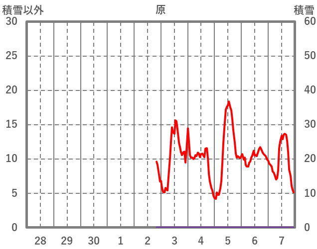 | 日 | 時 | 気温 | 降水 | 風向/風速 | 日照 | 積雪 | 降雪 |