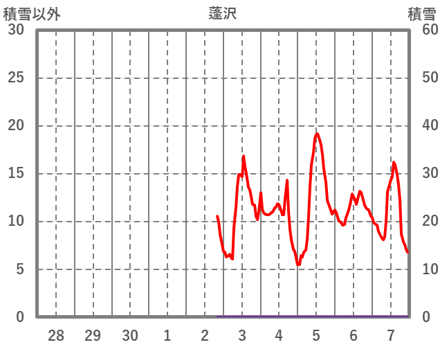 | 日 | 時 | 気温 | 降水 | 風向/風速 | 日照 | 積雪 | 降雪 |