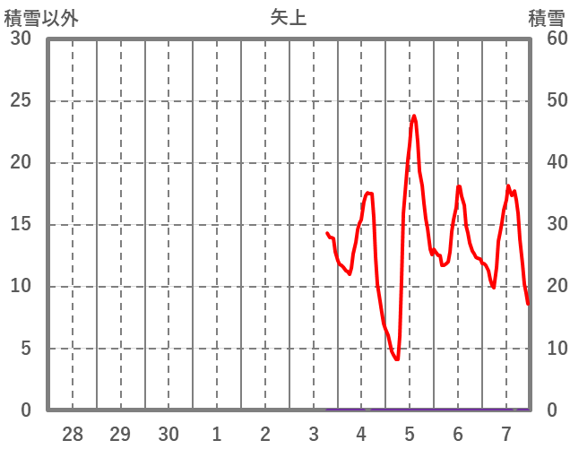 | 日 | 時 | 気温 | 降水 | 風向/風速 | 日照 | 積雪 | 降雪 |