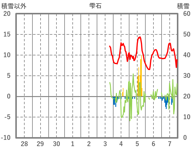 | 日 | 時 | 気温 | 降水 | 風向/風速 | 日照 | 積雪 | 降雪 |