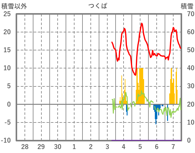 | 日 | 時 | 気温 | 降水 | 風向/風速 | 日照 | 積雪 | 降雪 |