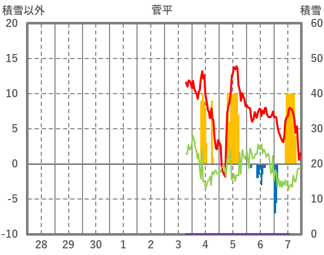 | 日 | 時 | 気温 | 降水 | 風向/風速 | 日照 | 積雪 | 降雪 |