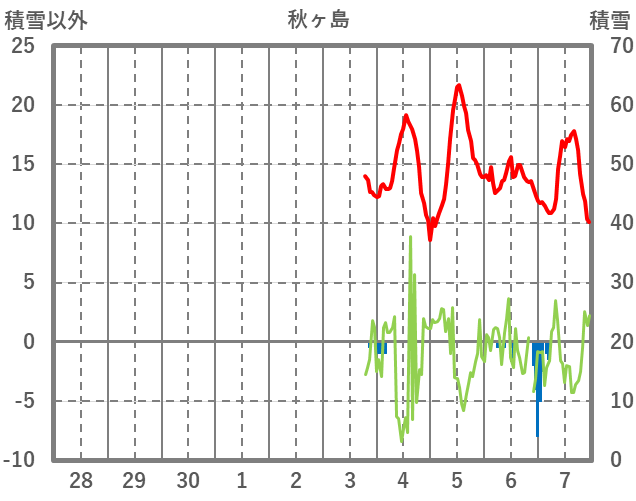 | 日 | 時 | 気温 | 降水 | 風向/風速 | 日照 | 積雪 | 降雪 |