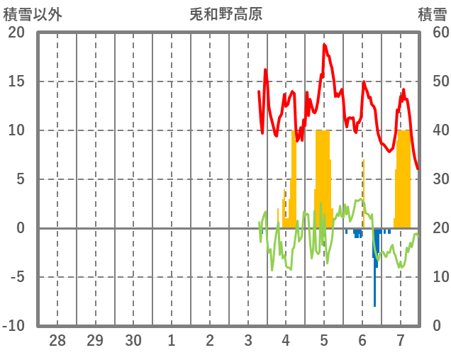 | 日 | 時 | 気温 | 降水 | 風向/風速 | 日照 | 積雪 | 降雪 |