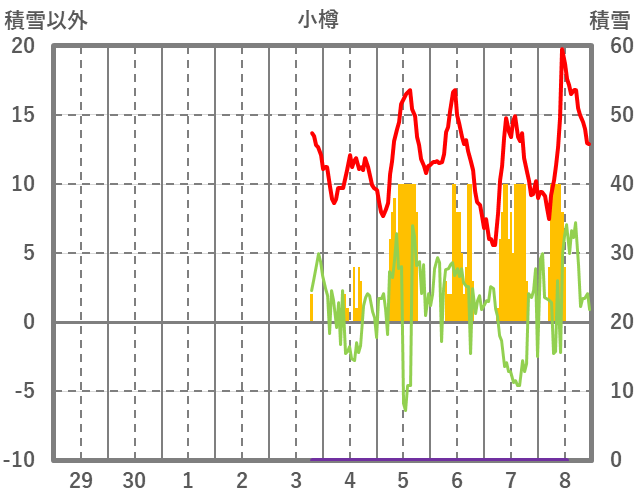 | 日 | 時 | 気温 | 降水 | 風向/風速 | 日照 | 積雪 | 降雪 |