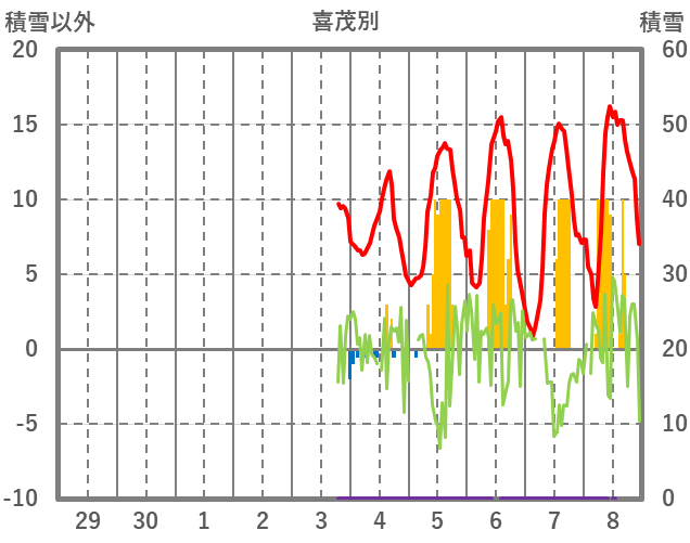 | 日 | 時 | 気温 | 降水 | 風向/風速 | 日照 | 積雪 | 降雪 |