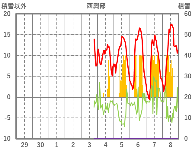 | 日 | 時 | 気温 | 降水 | 風向/風速 | 日照 | 積雪 | 降雪 |