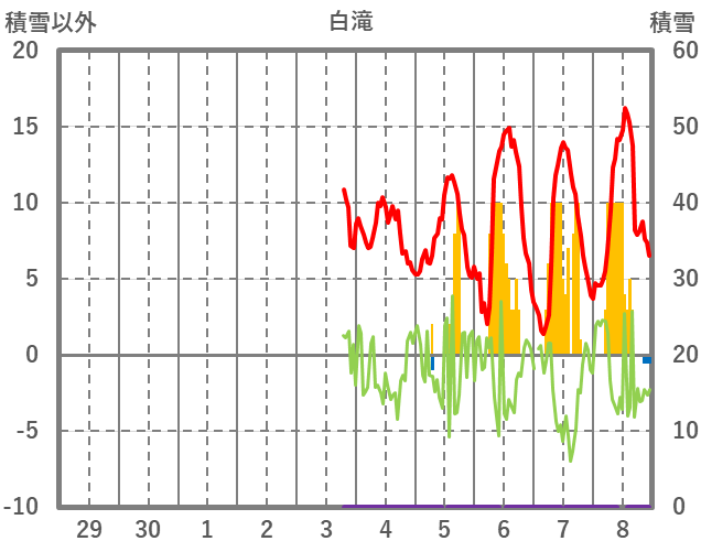 | 日 | 時 | 気温 | 降水 | 風向/風速 | 日照 | 積雪 | 降雪 |