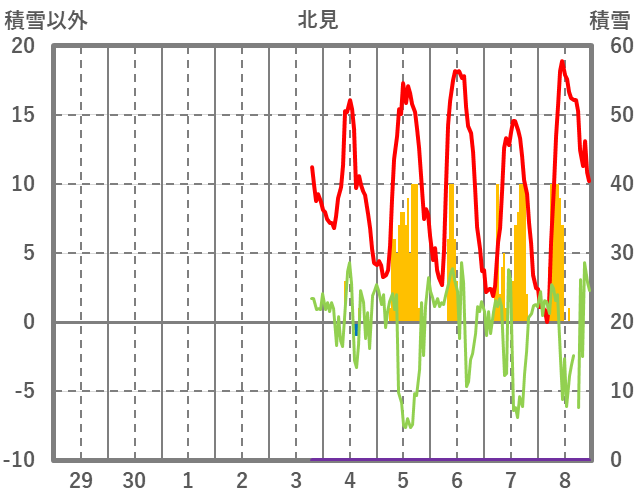 | 日 | 時 | 気温 | 降水 | 風向/風速 | 日照 | 積雪 | 降雪 |