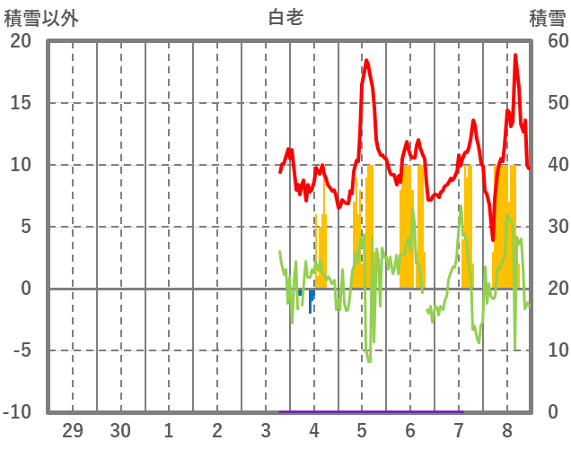 | 日 | 時 | 気温 | 降水 | 風向/風速 | 日照 | 積雪 | 降雪 |