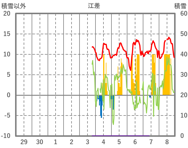 | 日 | 時 | 気温 | 降水 | 風向/風速 | 日照 | 積雪 | 降雪 |