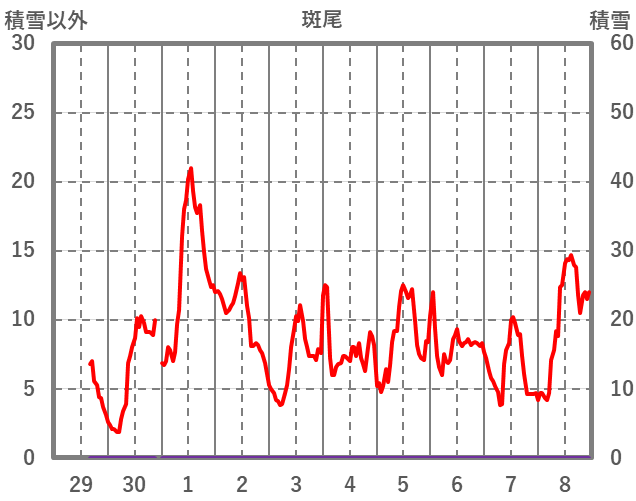 | 日 | 時 | 気温 | 降水 | 風向/風速 | 日照 | 積雪 | 降雪 |