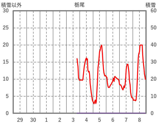 | 日 | 時 | 気温 | 降水 | 風向/風速 | 日照 | 積雪 | 降雪 |