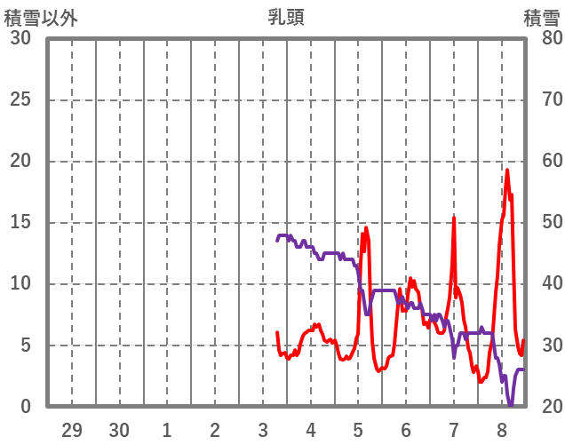 | 日 | 時 | 気温 | 降水 | 風向/風速 | 日照 | 積雪 | 降雪 |