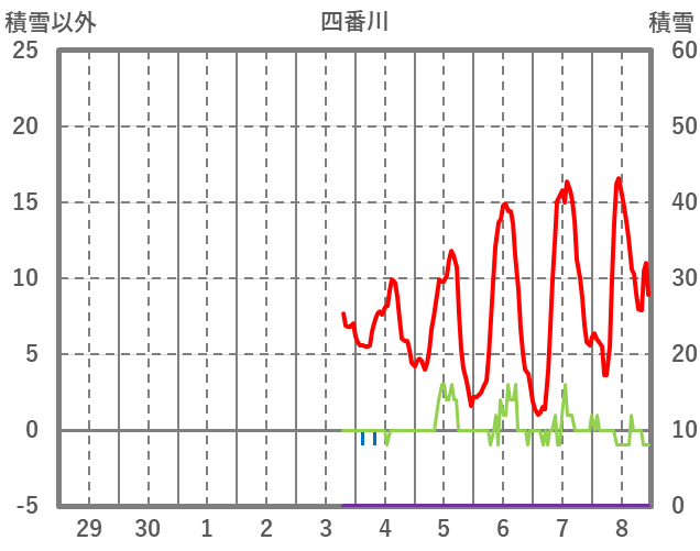 | 日 | 時 | 気温 | 降水 | 風向/風速 | 日照 | 積雪 | 降雪 |
