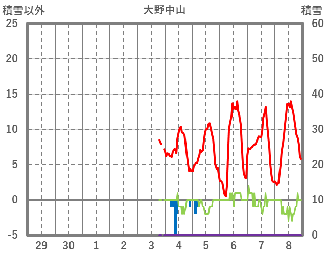 | 日 | 時 | 気温 | 降水 | 風向/風速 | 日照 | 積雪 | 降雪 |