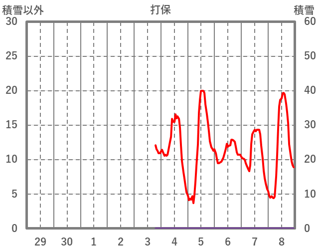| 日 | 時 | 気温 | 降水 | 風向/風速 | 日照 | 積雪 | 降雪 |