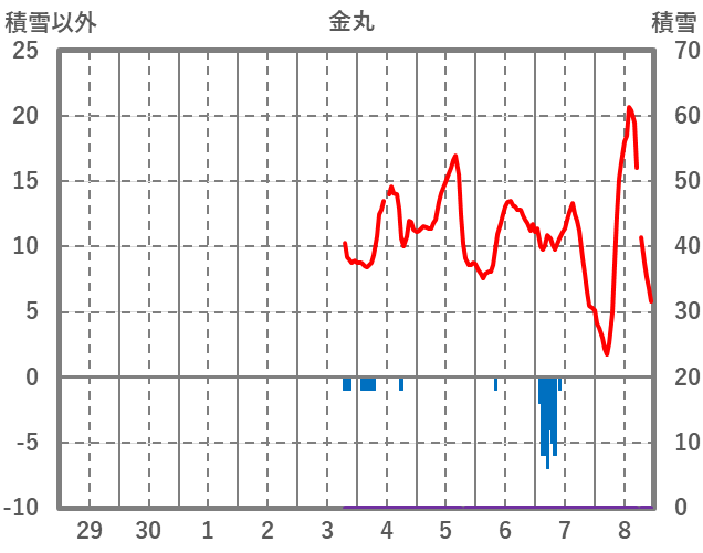 | 日 | 時 | 気温 | 降水 | 風向/風速 | 日照 | 積雪 | 降雪 |