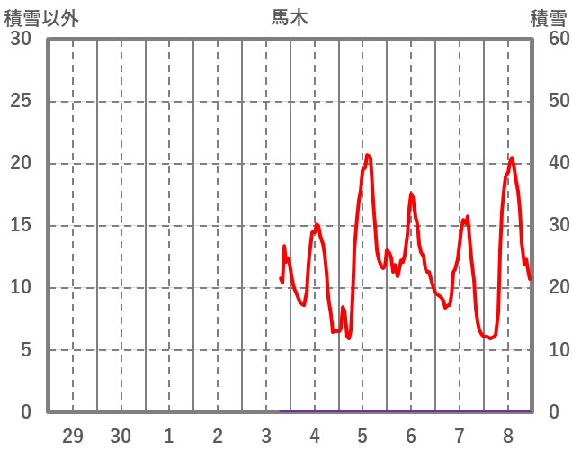 | 日 | 時 | 気温 | 降水 | 風向/風速 | 日照 | 積雪 | 降雪 |