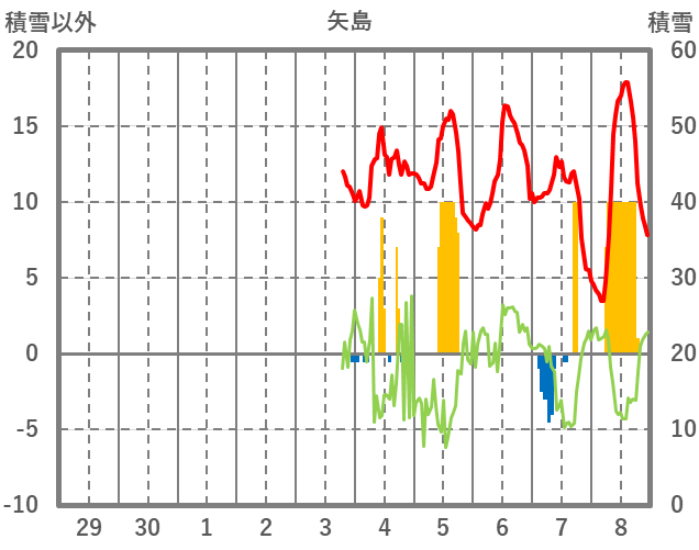 | 日 | 時 | 気温 | 降水 | 風向/風速 | 日照 | 積雪 | 降雪 |