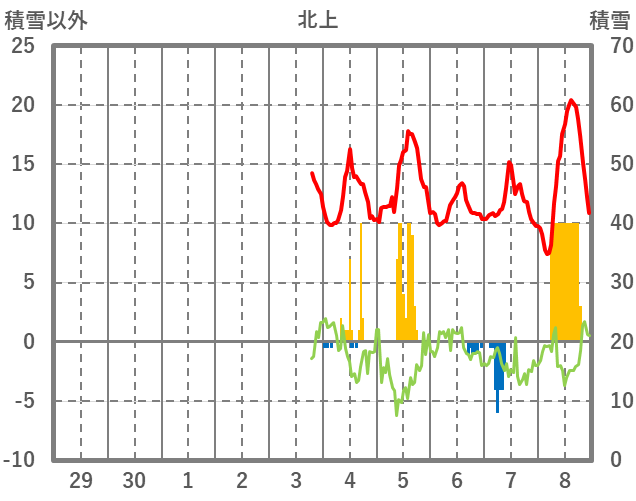 | 日 | 時 | 気温 | 降水 | 風向/風速 | 日照 | 積雪 | 降雪 |