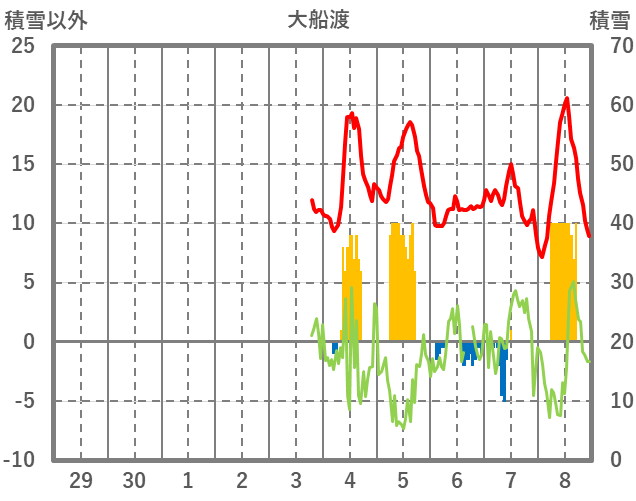 | 日 | 時 | 気温 | 降水 | 風向/風速 | 日照 | 積雪 | 降雪 |