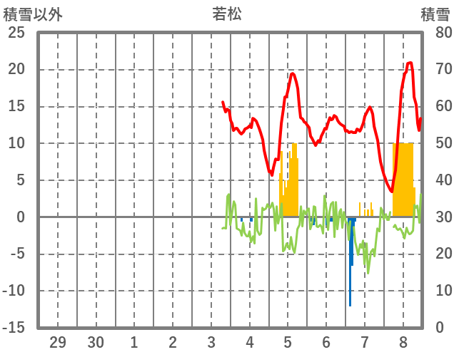| 日 | 時 | 気温 | 降水 | 風向/風速 | 日照 | 積雪 | 降雪 |